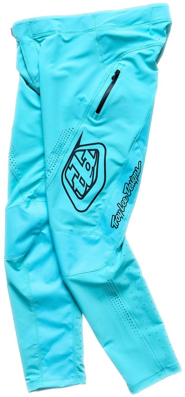 Fox DH trousers are constructed from durable 600D polyester for long lasting use. Heat and abrasion resistant leather knee panels offer extra padding while stretch panels around the crotch increase mobility. You’ll find quality downhill trousers from top brands including Fox Clothing, Scott and Troy Lee Designs.